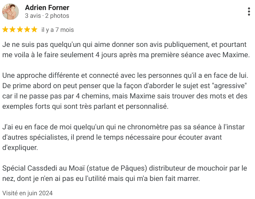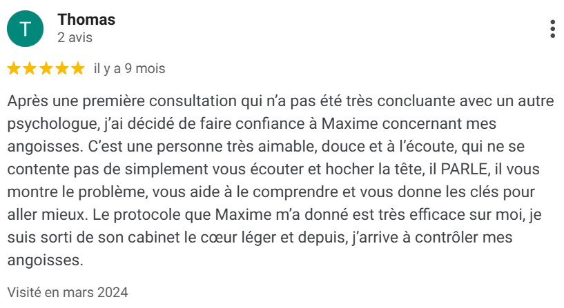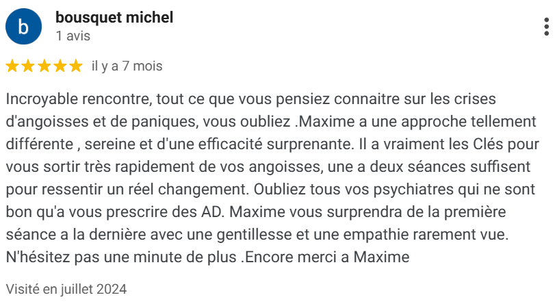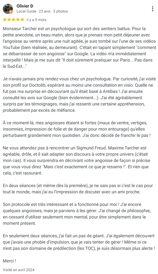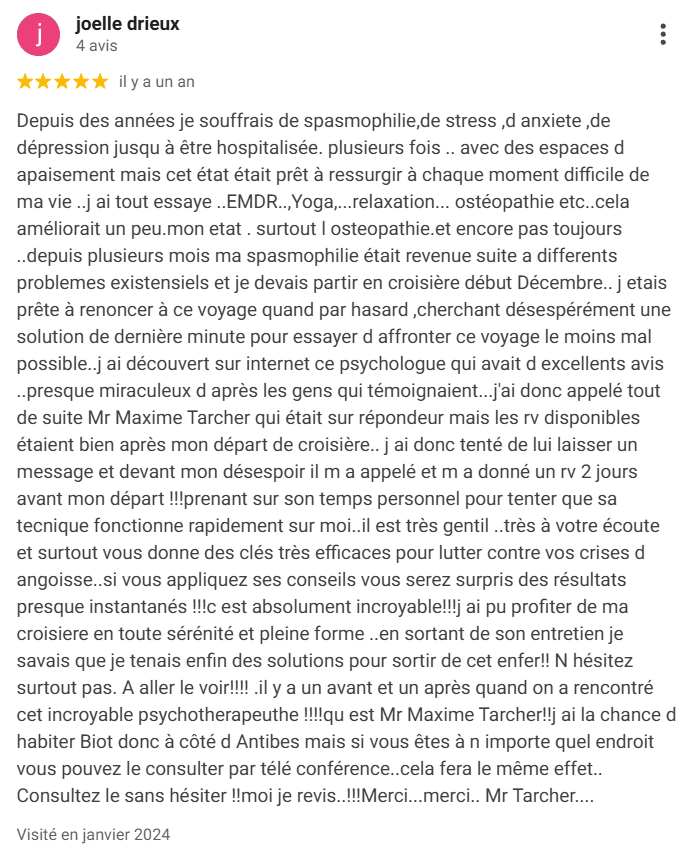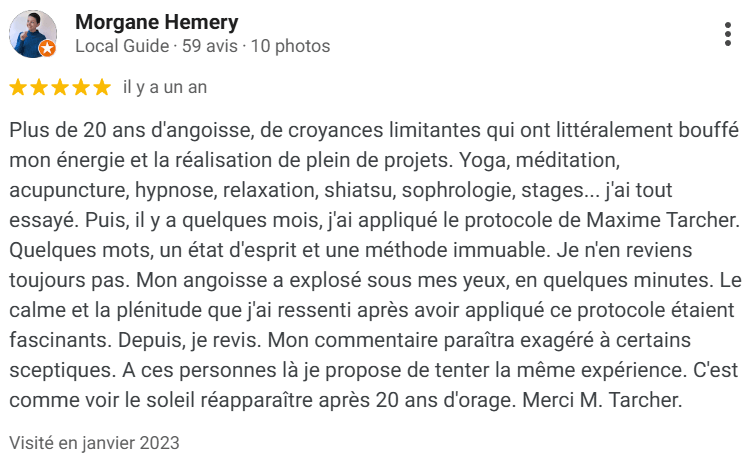 Psychologue diplômé d’État, Maxime TARCHER est spécialisé dans les crises d’angoisse, la mémoire et la connaissance de soi. Il accompagne chaque semaine de nouvelles personnes à se libérer durablement de l’angoisse grâce à une méthode simple et progressive.
